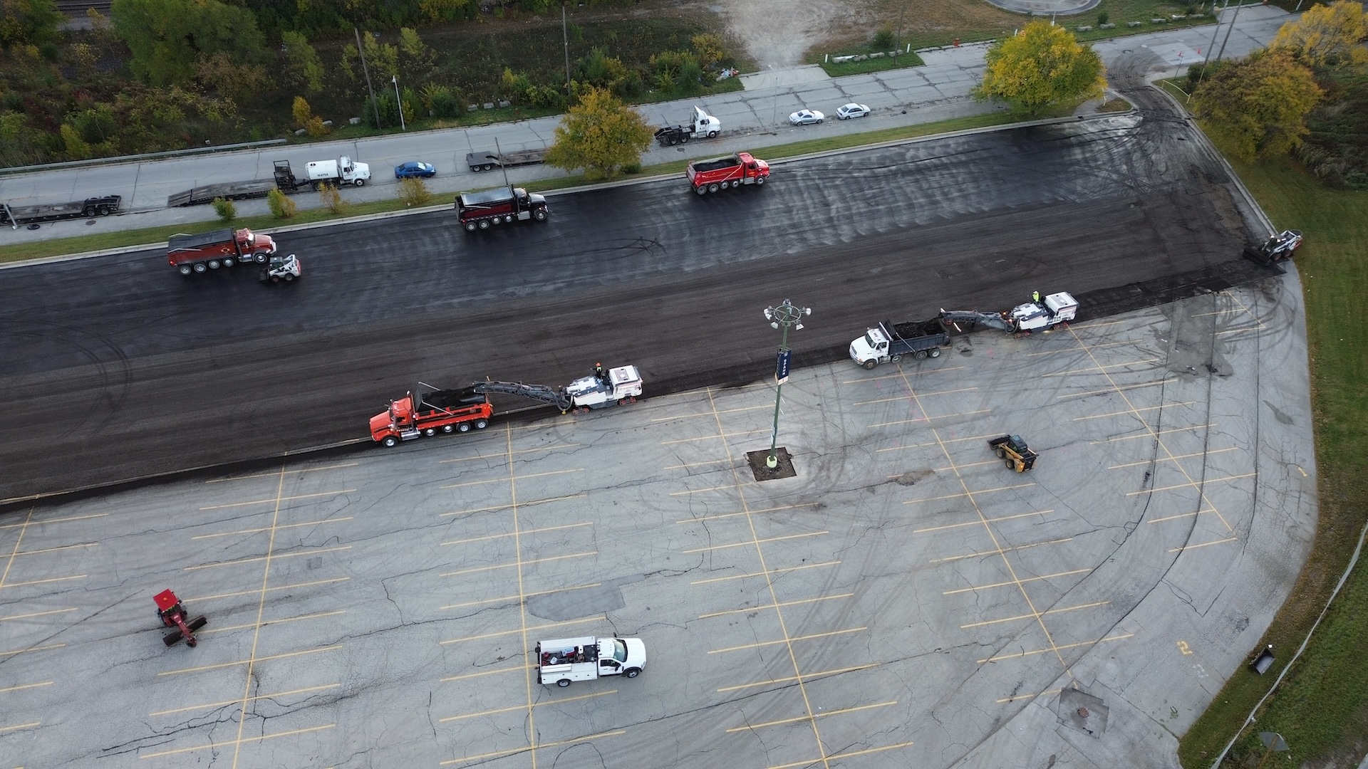 PLM Paving was chosen due to our track record of quality work and the capability to complete large-scale mill and pave operations—nearly 2,000 tons—in a single day.